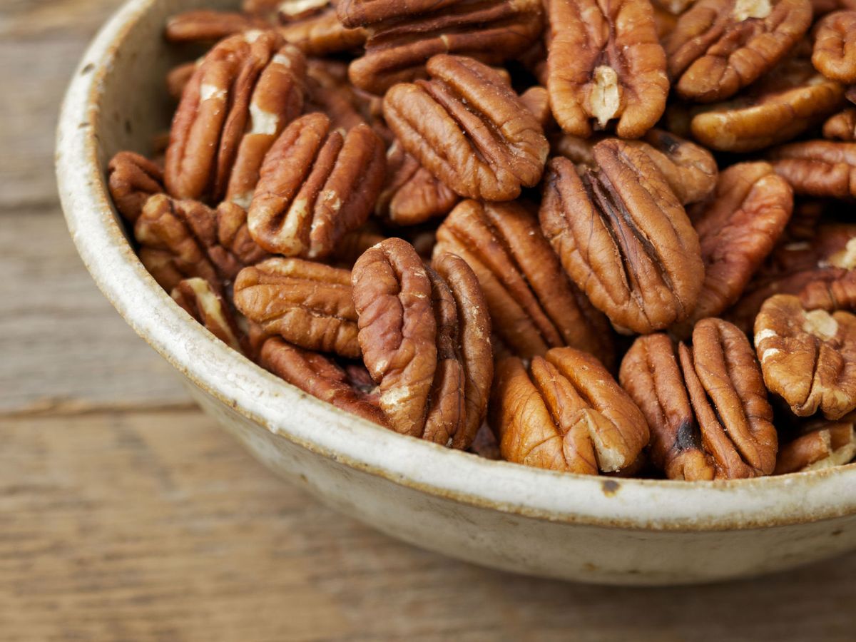 Pecans are a good source of calcium, magnesium, and potassium, which help lower blood pressure. Most of the fat found in pecans is a healthy type called monounsaturated fat. Eating foods with monounsaturated fat instead of foods high in saturated fats (like potato chips) can help lower levels of bad LDL cholesterol.